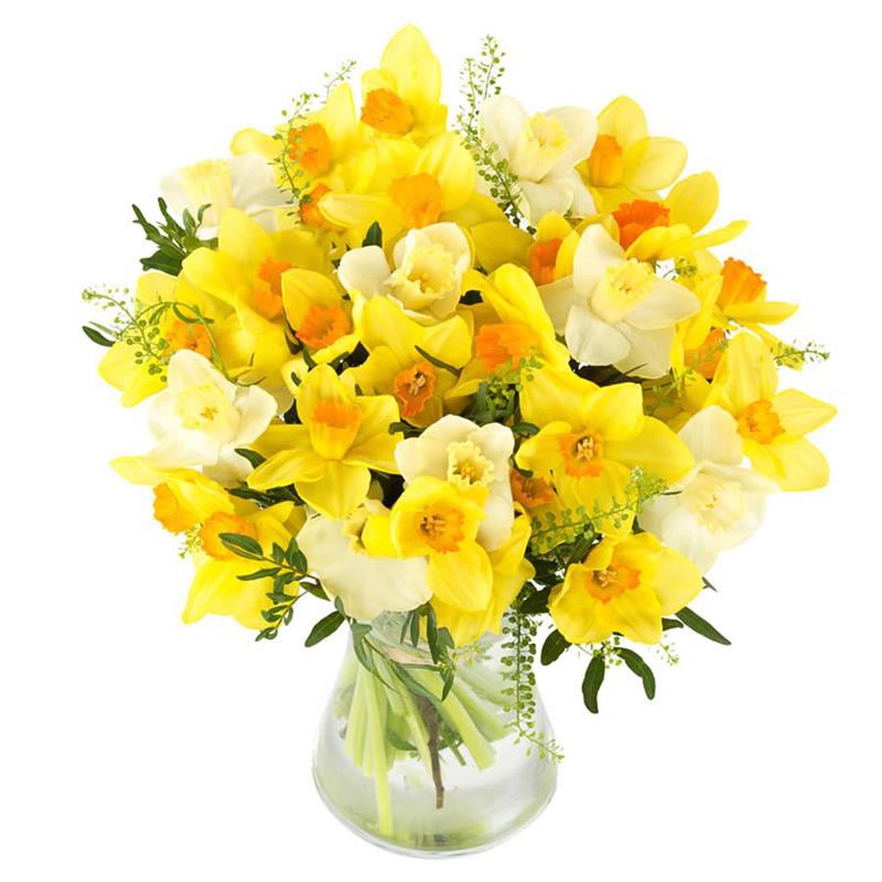 Ten bukiet to kwintesencja wiosny! Wyślij radosny wiosenny nastrój wraz z bukietem żonkili. Kompozycja będzie ułożona przez lokalną kwiaciarnię, masz też możliwość dołączenia bileciku. Cena nie obejmuje wazonu.